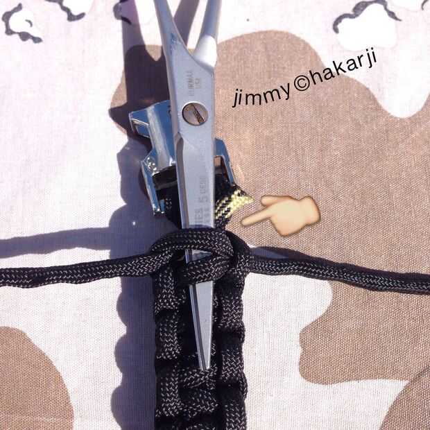 Puede utilizar un bolígrafo o paracord fid para ayudar a levantar los bucles (utilicé mis tijeras)