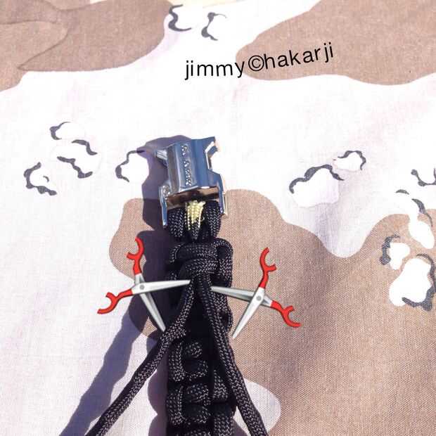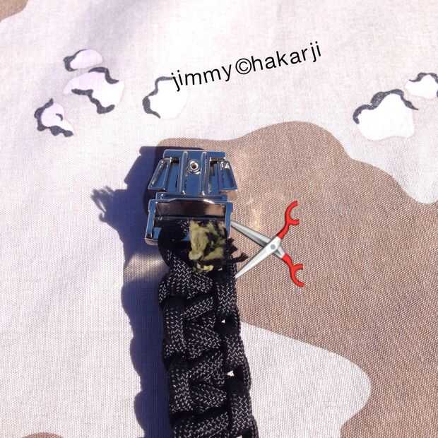 Cuidadosamente snip y los cables de exceso de la chamusquina Use sus tijeras y su luz de la antorcha Tenga cuidado de no cortar o quemar a ti mismo Después de esto la pulsera tendrá un aspecto acabado