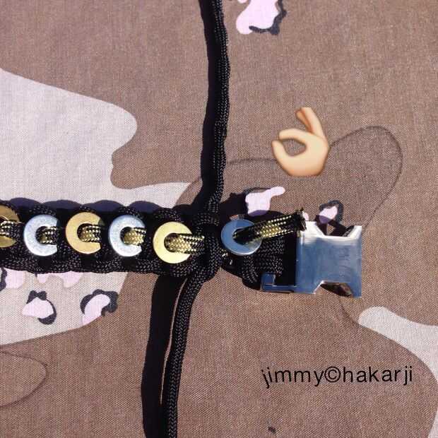 Seguir creando la cobra nudos alternando cada vez y añadiendo arandelas