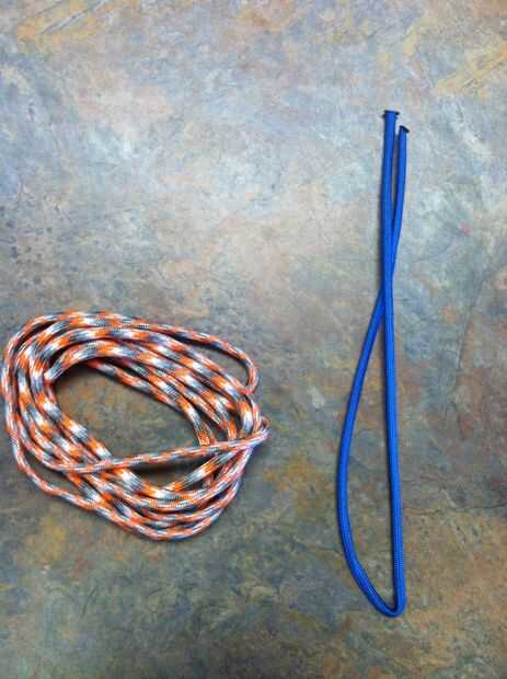 El paracord naranja es 7 pies y el azul es un poco más de un pie
