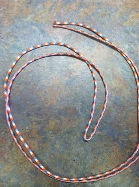 Agarrar la cuerda más larga de su elección y doblar por la mitad para tener igual longitud en ambos lados y deben tener un lazo en la parte superior