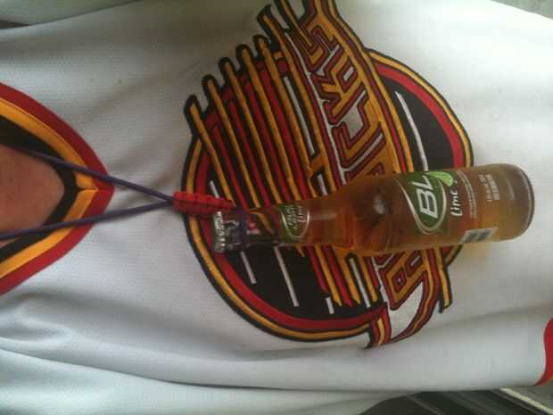 esta es una tarea sencilla y rápida para hacerPaso 1: materiales Botella de cervezaLíquido para encendedoresParacordEncendedorAgua heladaPaso 2: Ate la cuerda firmemente en la botellaPaso 3: Sacar cadena de botellaPaso 4: Poro el líquido para encende
