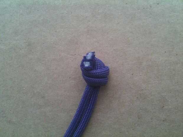 Entonces con eso longitud de paracord vas a querer un nudo muy seguro atado en el extremo como se muestra aquí en la imagen. (Acabo de hacer un simple sobre nudo de mano hace el truco)