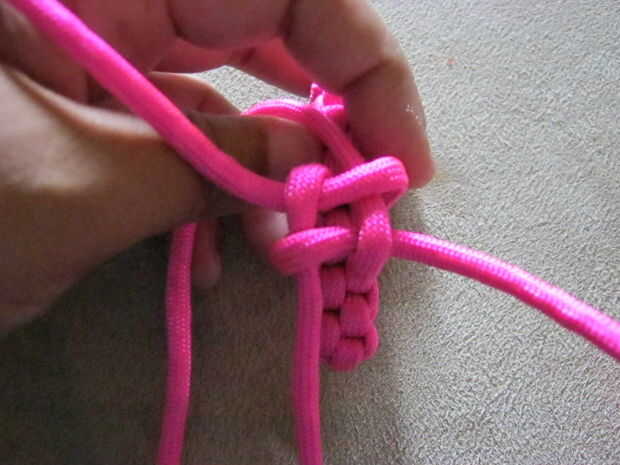 Luego a cruzar los dos en el lado, como un nudo de caja regular. El de la izquierda va a la derecha, y el de la derecha va a la izquierda.