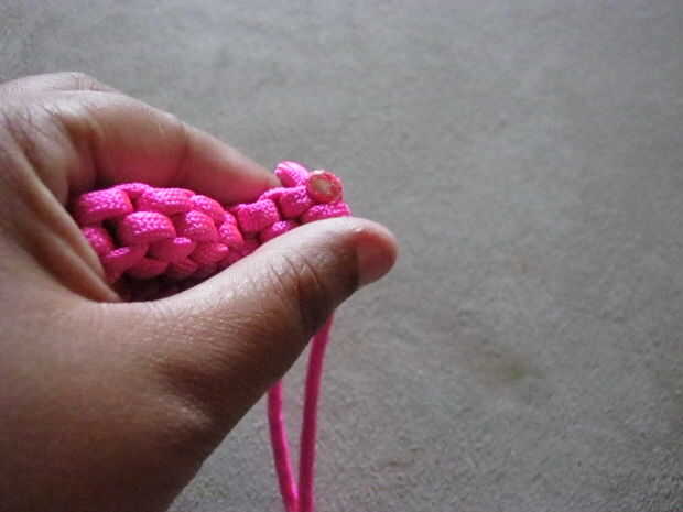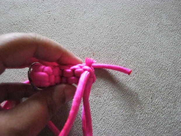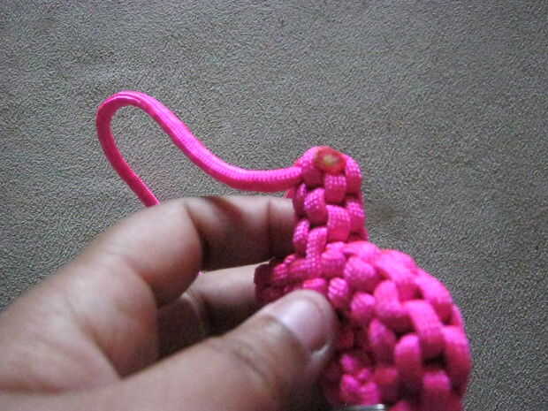 Después de terminar sus cinco capas, cortadas aproximadamente 1/8" de la cinta y la fusión, luego aplastar con su encendedor. Continuar con los restantes tres extremos.
