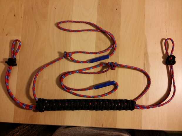 Diseñé esta manija super simple. Sólo requiere 2 tipos diferentes de nudos y se puede hacer con 17' de paracord y artículos para el hogar!