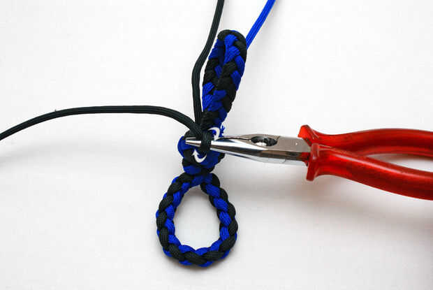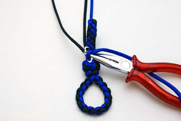 Repita este proceso hasta que cortó todos los filamentos. Golpear con un martillo en el nudo, durante este proceso de girar el nudo. Los extremos de corte no deben ser visibles. Si los extremos de corte son todavía visibles, traiga en el nudo con la aguja de paracord. Finalmente entonces forma el nudo.