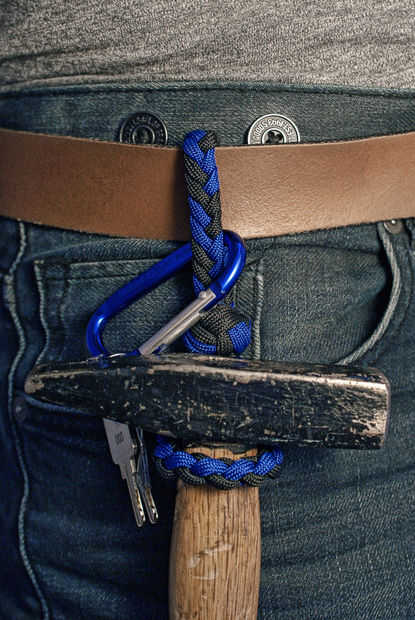 Puede actualizar el paracord martillo titular con un mosquetón de seguridad. Por ejemplo usted puede utilizar esto para llaves.