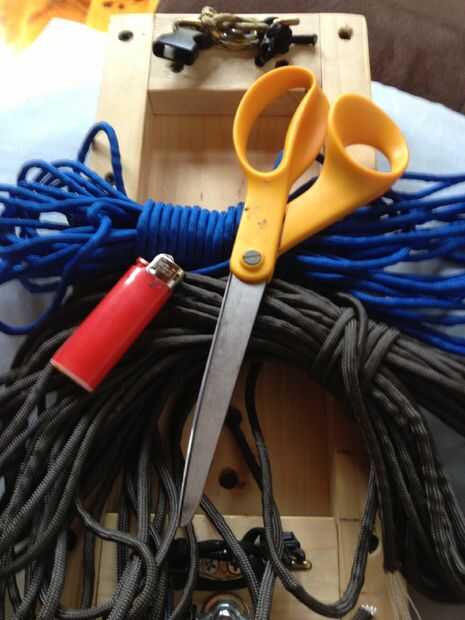 Corte 12-13 pies de cable de tres colores que estoy utilizando dos hebras de azul y uno gris no importa si tienes dos gris y uno azul de cualquier manera funciona. Dependiendo del tamaño de la muñeca la que estoy haciendo es para una muñeca de 8". Necesitarás •Scissors •Lighter •Buckle Jig (no requerido)