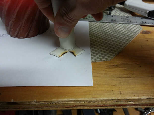 Realizar una hendidura en cada uno de los cuatro extremos, en la profundidad de las marcas que hicimos.