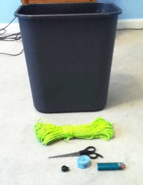 cadena de cuerda de paracaídas 550 100ft Encendedor Cinta métrica Bote de basura, cesta de lavadero, cubo como base Tijera Ajuste la perilla de Hebilla de bloqueo