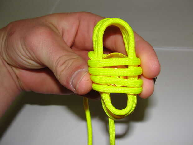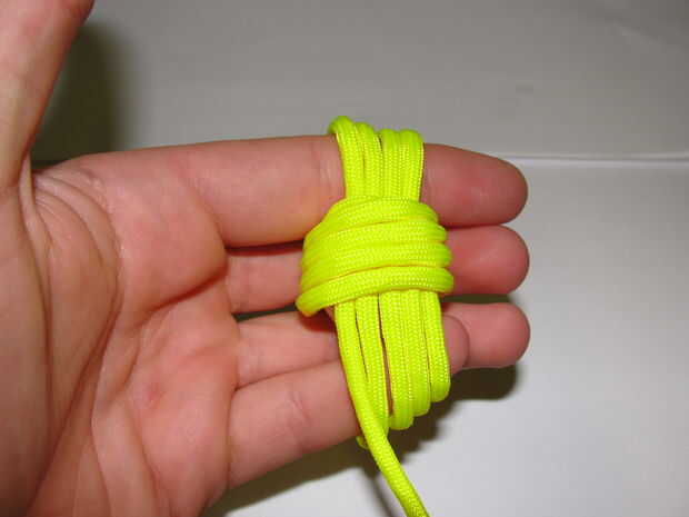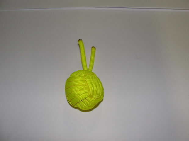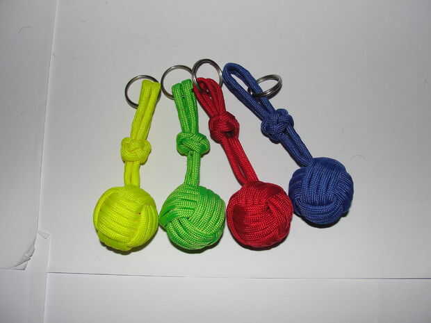 Para hacer este nudo necesita un pequeño objeto esférico como una canica grande, aunque se puede hacer cualquier tamaño para esta aplicación no queremos demasiado grande. Para hacer un puño de monos se enrolle el cable alrededor de su mano varias veces, el número de veces depende del tamaño del objeto esférico, (imagen 3), retire sus mediados dos dedos y le coloque un objeto esférico en su lugar (imagen 4), luego Envuelva el cable redondo el objeto cilíndrico vertical el mismo número de veces como hiciste anteriormente pasarse el cable previamente envuelto (imagen 5) , ahora necesitas quitar los dedos de en medio el mármol y el cable de asegurar que no todos los desenvuelva (imagen 6), a continuación enrolle el cable redondo que va debajo de la cuerda donde estaban los dedos y sobre la otra (imagen 7) y finalmente poco a poco trabajar firmemente (imagen 1)