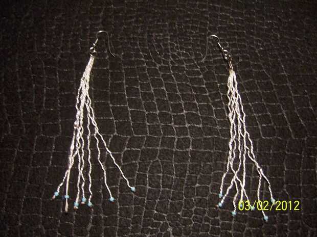 Este es un trabajo que ha hecho mi esposa. Tiene unos pendientes, de esos tipo perla. Pero con el tiempo empezo a perder el nacar, y se estropearon. Y decidio darles un cambio, y de paso experimentar un poco.Los materiales empleados son sencillos:-Un