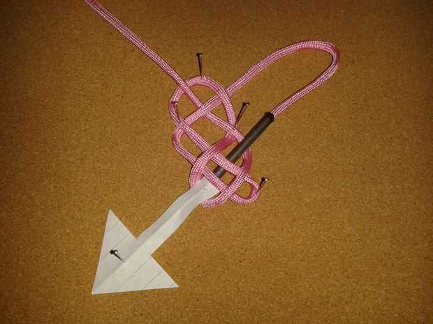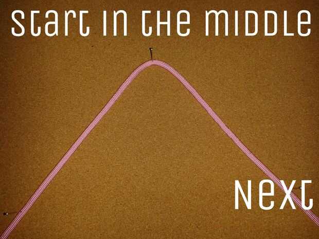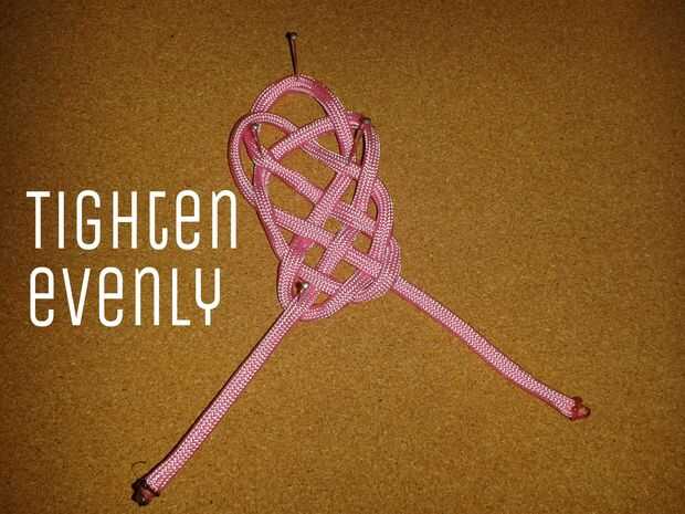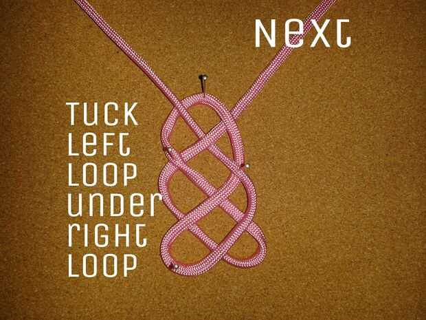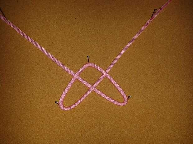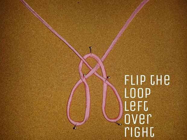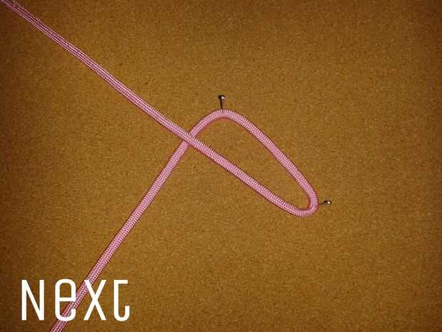 Con el pedazo de 2 pies de paracord rosa, sigue las imágenes para crear la lengua. Reservar para más tarde.