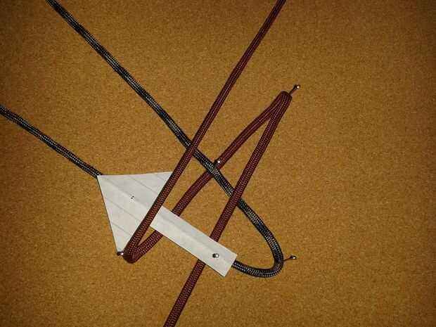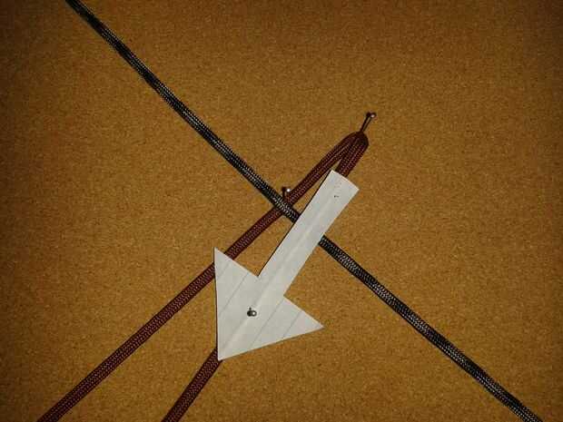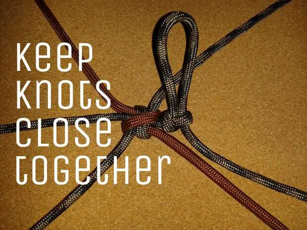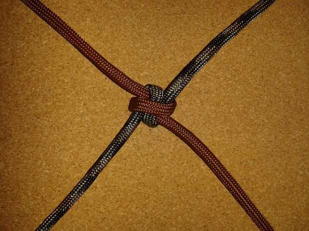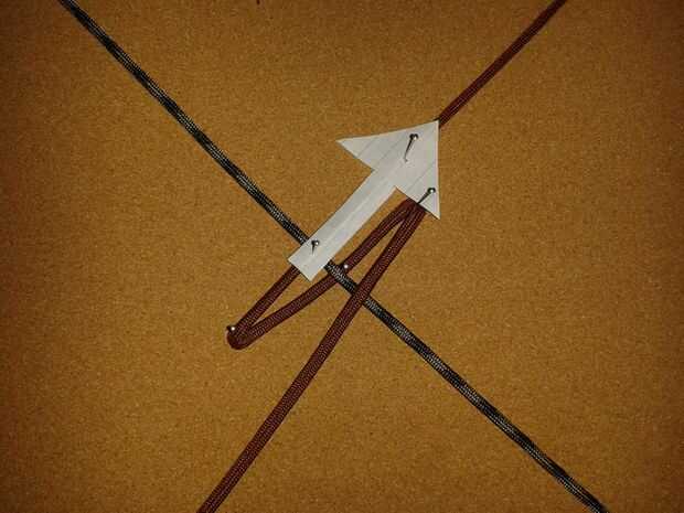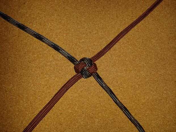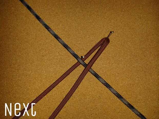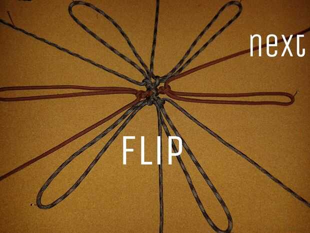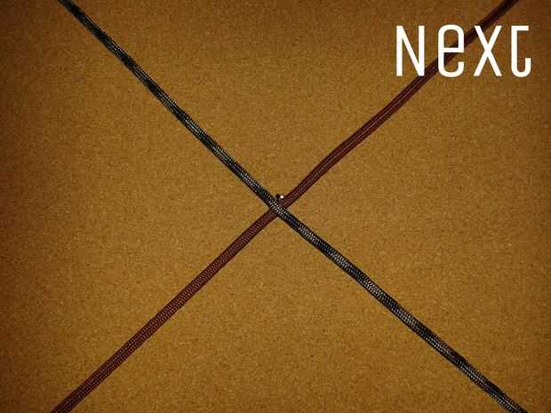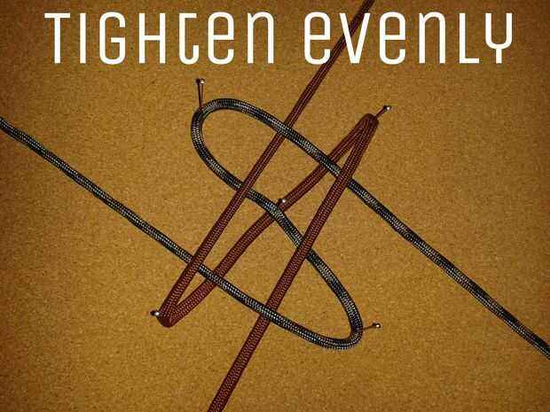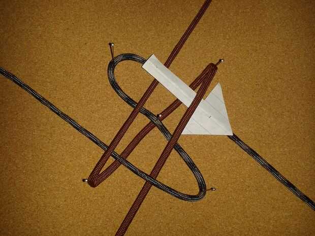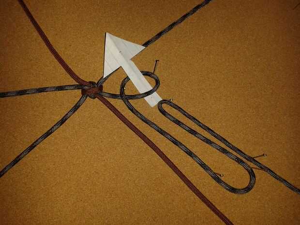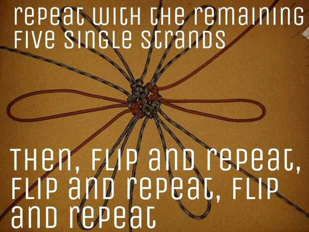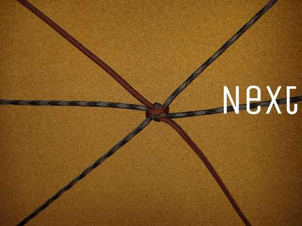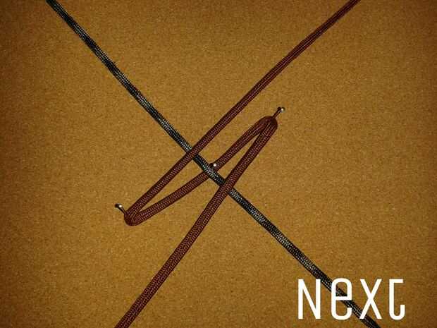 With each 12 ft piece of brown camo and one piece of 12 ft brown paracord, follow the images to start tying the head. Repita con el las longitudes tres 18 pies para iniciar el cuerpo.