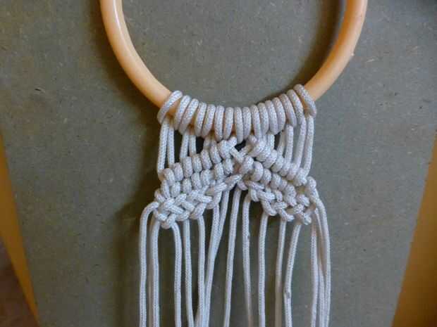 Ahora tienes dos filas de enganches de clavo de olor y una fila de nudos cuadrados