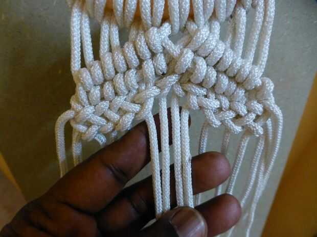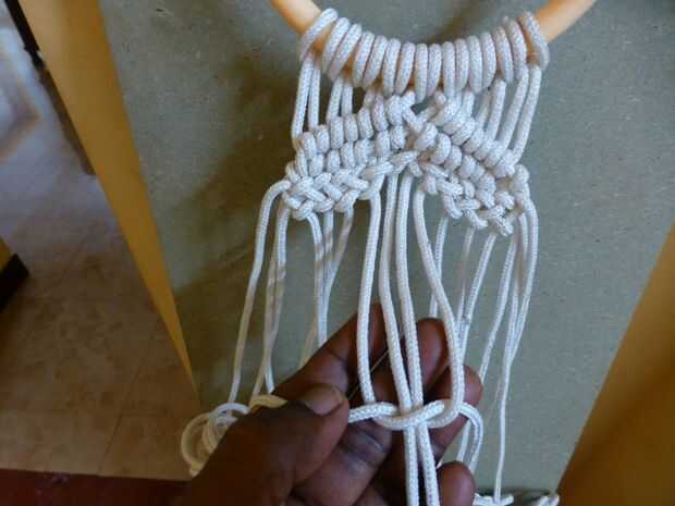 • Hacer un nudo cuadrado con las cuerdas exteriores alrededor de los dos cables de interiores
