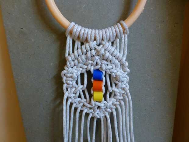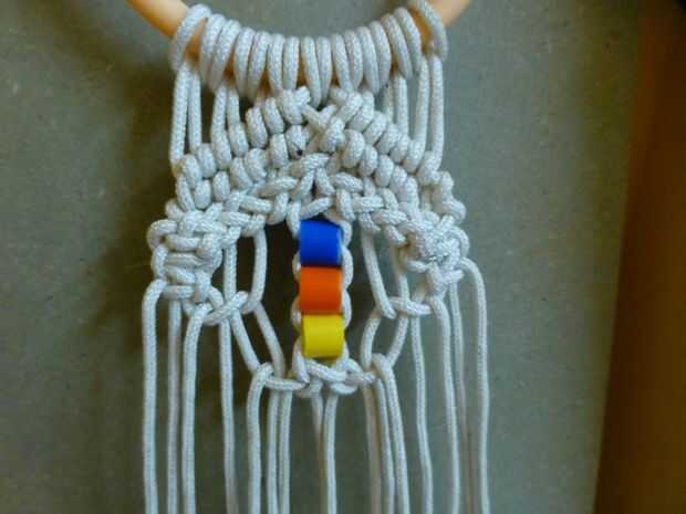 • Ver la imagen, cómo se ve después de completar este paso. Los nudos cuadrados forman un patrón de inclinación hacia arriba del centro a los bordes