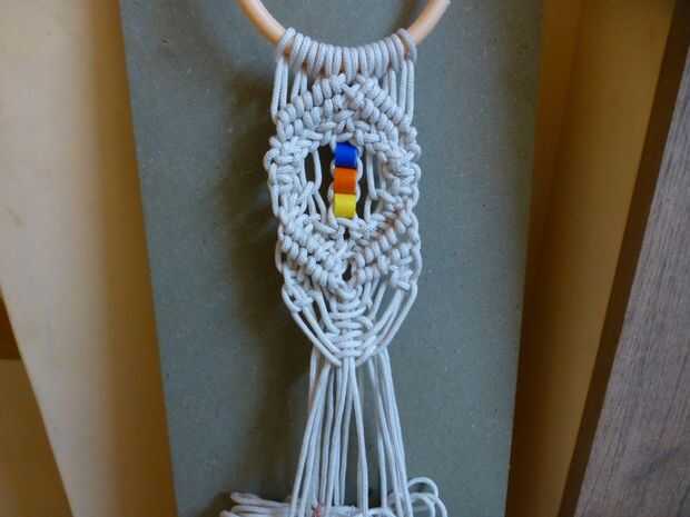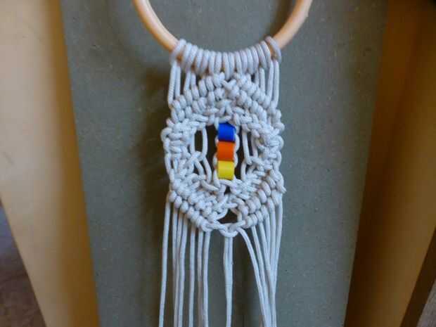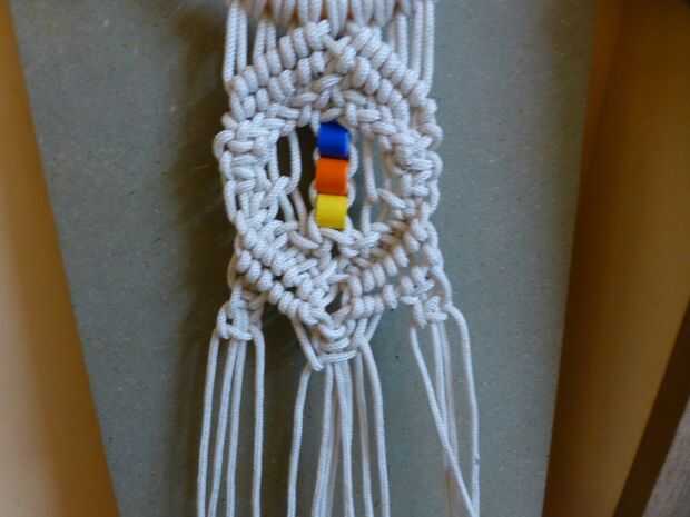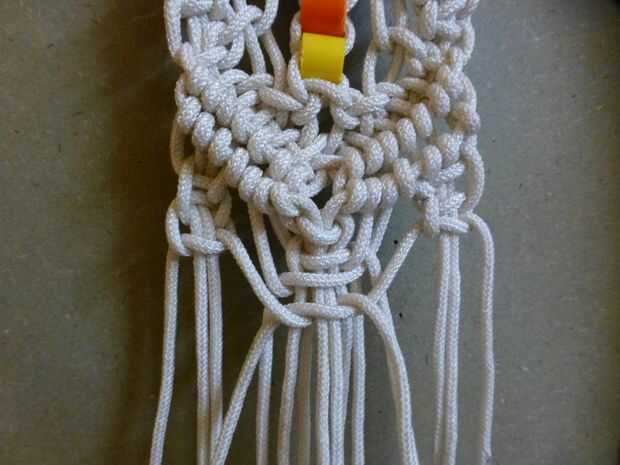 - Comience alternando nudos cuadrados con cuarto, tercero, segundo y primeros cordones alrededor de la mitad dos cables respectivamente