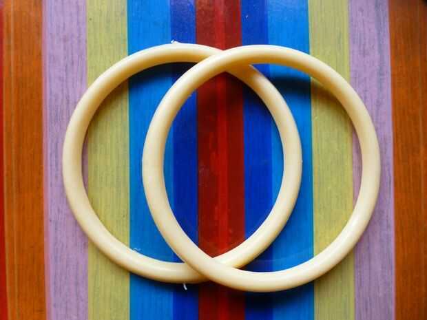 • Dos anillos de plástico de aproximadamente 120 mm de diámetro exterior y 10 mm de espesor. Color no importa como se tratarán estos anillos. Puede utilizar anillos de acero también.