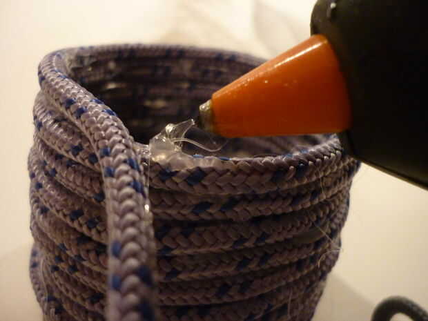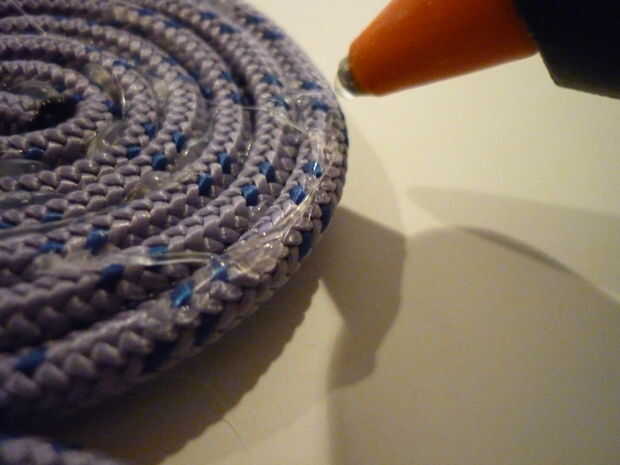 Una vez que haya terminado la base, empezar a construir las paredes de la olla, poniendo pegamento en la parte superior de su exterior paracord más redondo, luego rizar su ontop de paracord de su cola, seguir haciendo hasta que llegaron al final, utilicé mi cristal como base para asegurarse de que mi principio era redonda y es una buena idea de utilizar al máximo , pero no lo hice y como resultado mis paredes son ligeramente curvas. Sólo recuerda tener cuidado de no pegar el molde para el paracord!