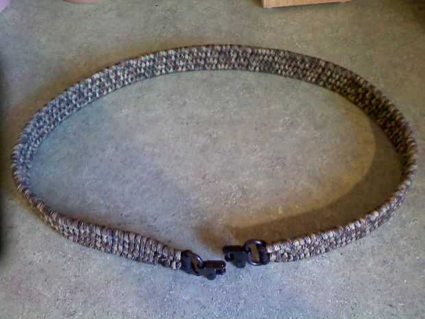 decirle cómo hacer un paracord correa/sling plus 450' de paracord a su disposición!Paso 1: La trenzaHice 3 trenzas planas iguales de 150' de paracord 550 unida a una hebilla grande paracaídas. el dólar está en las fotos para tener una comparación de