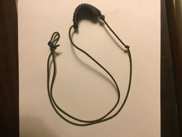 esta es una manera útil para hacer un cabestrillo.  ¿Qué hace bien?  No necesita utilizar dos trozos de cable, y si usted necesita la cuerda por otra razón rápidamente, apenas se desate el lazo del dedo y el nudo de tope, tirar de la cadena a través