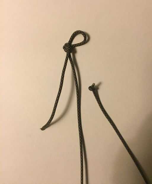 esta es una manera útil para hacer un cabestrillo. ¿Qué hace bien? No necesita utilizar dos trozos de cable, y si usted necesita la cuerda por otra razón rápidamente, apenas se desate el lazo del dedo y el nudo de tope, tirar de la cadena a través
