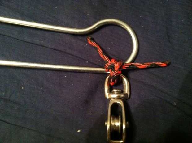 Coloque la polea a la percha con el corto de paracord como se muestra en foto
