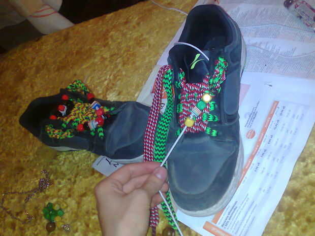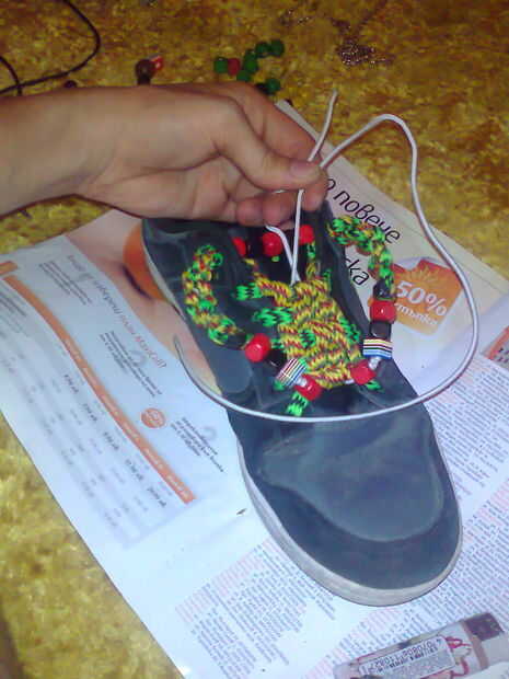 materiales:ParacordPegamento del gorilaTijerasEncendedorAsí que lo primero que hice fue cortar las cuerdas viejas y medir su longitud. Luego midió el paracord y cortar unas pulgadas más largo que la longitud de la cadena vieja. Después llamas los ext