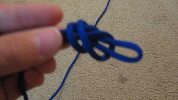 3er paso: mover un pie o tan abajo el paracord y lazo y lazo por todo lo alto. Este lazo debe ser 2" a 1" de largo.