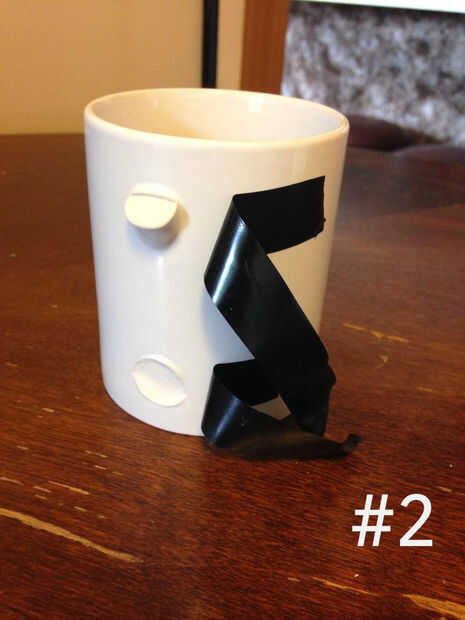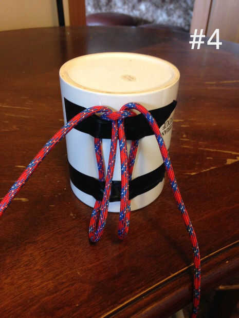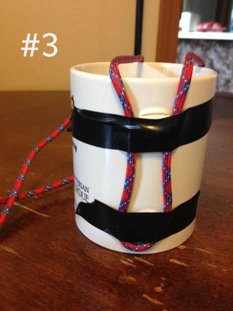 2. Entonces usando la cinta, el cable a la taza con el extremo del lazo en la parte inferior y libres cuerdas en la parte superior.