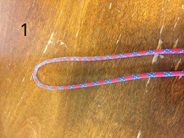 1. Usted necesita encontrar el centro de su paracord y hacer un lazo como se ve en la primera foto.