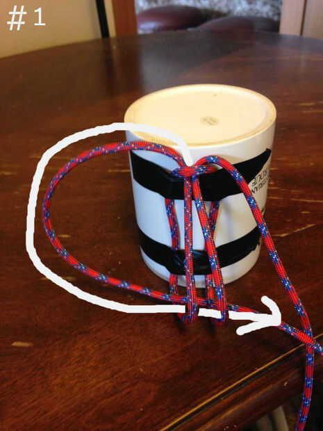 esto es una solución fácil para focos con asidera torpe usando aproximadamente 9-11 pies (según el diámetro de la manija) de Paracord (cordón de apertura).Paso 1: Haga un nudo (Foto 3) donde desea el mango para empezar, hacer una cadena más larga que