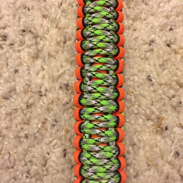 El rey Cobra Paracord tejer con marcador negro. Esto es lo mismo que la armadura de cobra, pero tejida sobre sí mismo. El trazador es que un pedazo de micro paracord tejida con la pieza exterior de paracord. Es el más ancho de los tejidos de paracord y uso unos 20 pies de paracord. Al aprender cómo hacer una pulsera de la supervivencia. Ver más Nudos de Paracord.