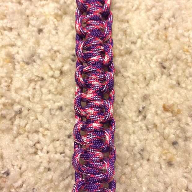 Armadura de Paracord Rattler es un tejido más nuevo, no utiliza tanto 550 paracord como otros tejidos, cerca de 8 pies.