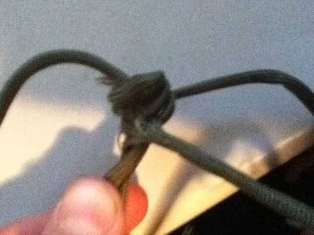 Para terminar envolvió paracord alrededor de todo el alambre expuesto para hacer ver (y sentir) agradable. Lamentablemente me quedo sin paracord cuando necesité unas 2 pulgadas. Y también corte todas las piezas de aspecto borrosas. Ahora listo!
