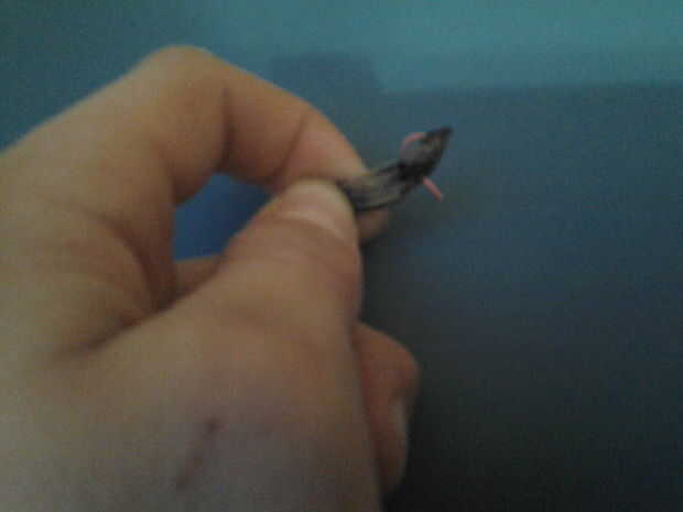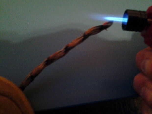 Pase el extremo del cobre a través del molle y el exceso de clip derretir el cable.