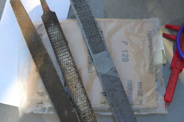 Para todos la madera que forma las necesidades (al menos para este proyecto): Escofina redonda media, una escofina plana y un paquete fresco de papel de lija.