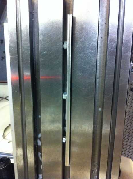 La parada de utiliza la pared cuadrada de la ranura en T para alinear la cara mecanizada de la parada, que se fija entonces en hacer con pernos en la parada sí mismo.