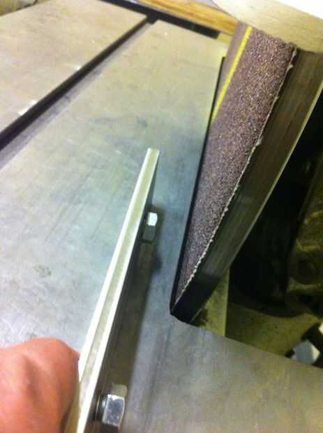 Tierra de las tapas de los pernos en una amoladora de disco, usando la barra como un titular.