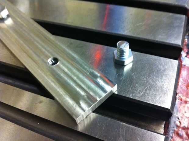 Yo también corte el tornillo sobrante con una sierra para que tenía disponibles unos pocos hilos. El perno tiene que ser lo suficientemente largos para tener suficiente hilo para abrazadera pero corto bastante que el perno no se extiende a través de la barra.