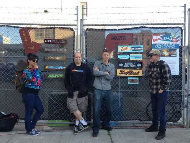Para el festival de prototipos urbanos, construimos un borrador de una parada de autobús inteligente que tiene acceso a datos públicos. Se Emperne algunos signos en medio de la noche, que le dirá a las personas a enviar un texto a un determinado número, con el identificador de la parada de autobús incluido, así como su pregunta. Nuestra señalización incluirá un conjunto inicial de preguntas. Nuestro servicio será ver donde vive esa parada de autobús, entonces responder a la pregunta basada en esa parte de la ciudad.