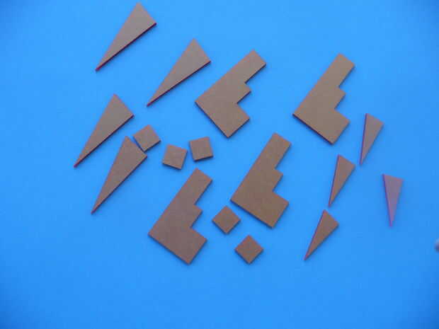 estas dos rompecabezas son mosaico rompecabezas similares al Tangram más popular.El puzzle de T consta de cuatro piezas y a pesar de este hecho se considera generalmente para ser más difícil que el Tangram.La Plaza de Pitágoras Puzzle consiste de cin