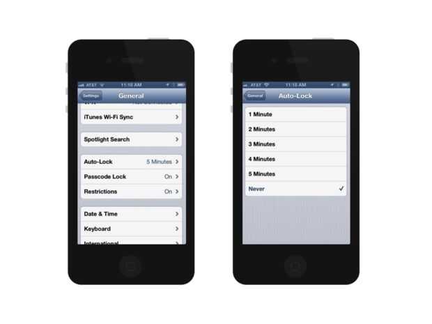En el iPhone ir a ajustes > General > bloqueo automático > nunca. Esto evitará que el teléfono siempre apagado. También, en ajustes > pantalla y brillo, asegúrese de desactivar el brillo automático y establecer el nivel de brillo que desee.