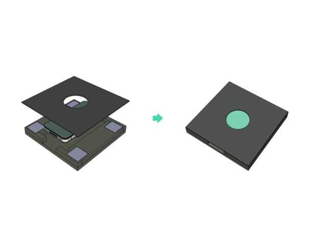 Por último, lugar cargado el iPhone con la aplicación deseada en el cuadro, manteniéndolo conectado a la salida del adaptador. Coloque 4 x 3M/Scotch removible cuadrados de montaje en cada esquina de la pieza de acrílico, luego coloque sobre el bastidor. Colgar el golpe . ¡ Y listo!