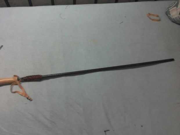 muestra cómo hacer un arpón, similar al arpón de Hoffman, previsto como una especie de herramienta de supervivencia minimalista. Es 8 pulgadas de largo, con 2 y una mitad pulgada hoja, la empuñadura está envuelta en paracord.No han hecho una funda pa
