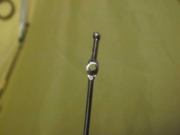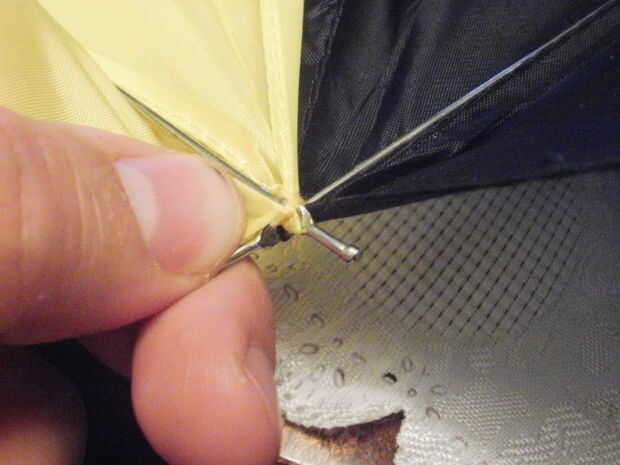 Cada punta tiene un agujero donde el dosel es cosido. Usé este agujero en las dos puntas para coserlas juntos