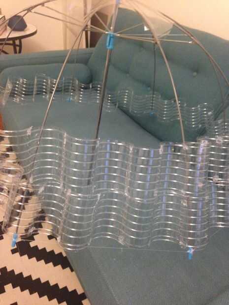 1. después de terminar el primer anillo de Tejas les ponen sobre el paraguas y empuje suavemente hacia la parte inferior.