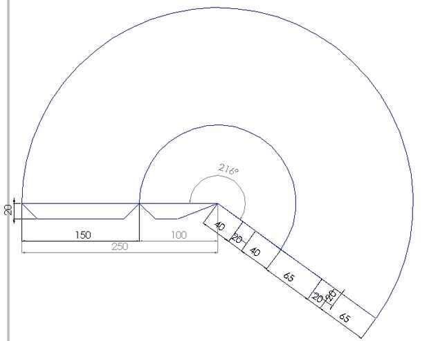 Además de la foto de mi bosquejo y los comentarios, os adjunto un archivo de solidworks con todas las mediciones en detalle (debe tener solidworks para ver este archivo).